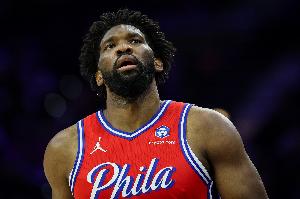 全场恩比德出战38分55秒,23投12中,三分5中0,罚球10中9,轰下33分4板8助1帽,正负值+13。