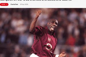 坎贝尔:若能亲眼见证阿森纳夺欧冠是巨大荣誉,有时也需要运气